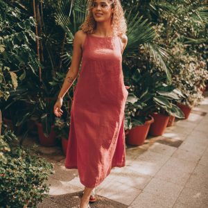 Crafted entirely from natural linen, this midi-length sleeveless dress is a must-have seasonal essential that blends effortless elegance with everyday comfort. Designed with a minimalist aesthetic, it features a beautifully elongated silhouette that drapes gracefully, flattering a variety of body shapes.